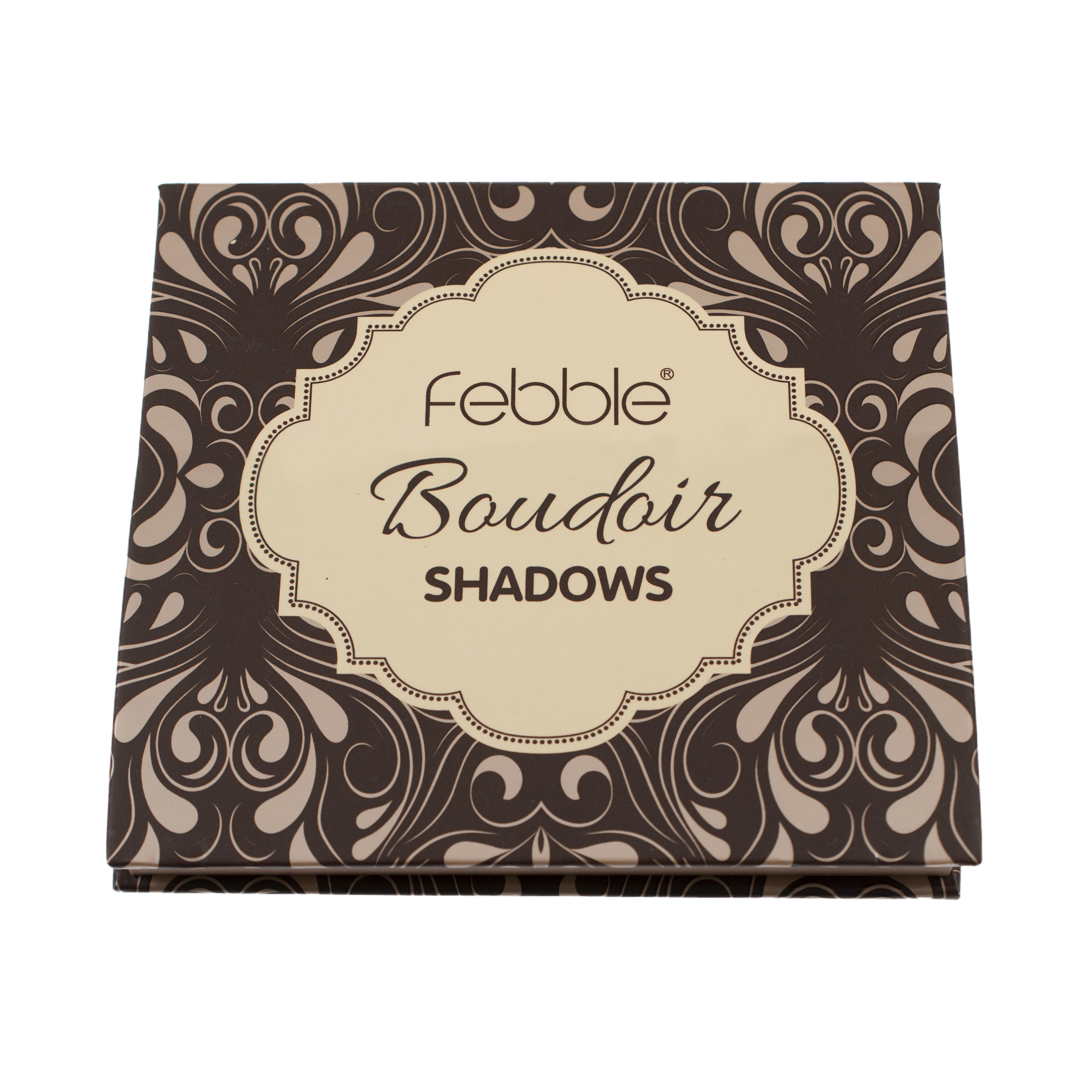 - Febble Boudouir Shadows contains 9 shades with intense color rendering and long lasting in natural and warm tones to create an impressive look.